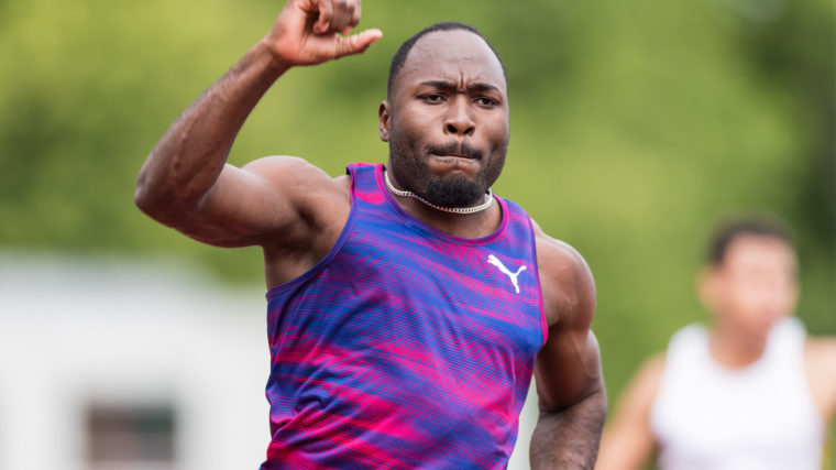 Alex Wilson stellt im deutschen Weinheim Schweizer Rekorde über 100 und 200 Meter auf.