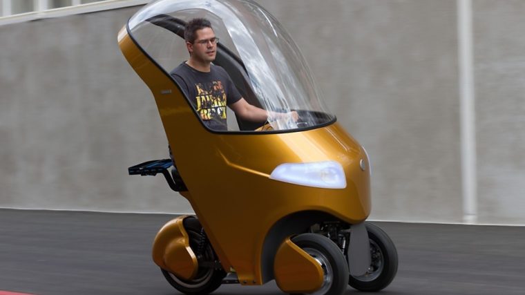 Ihre Lösung ist das BiCar, eine Mischung aus Auto und E-Bike. Es ist mit seinen 70 Kilogramm viel leichter als ein Auto und wegen der drei Räder und der Kunststoffverschalung sicherer als ein E-Bike. Und nass wird man auch nicht, wie Sauter sagte. Zudem ist es platzsparend: Auf einen einzigen Autoparkplatz passen acht BiCars.