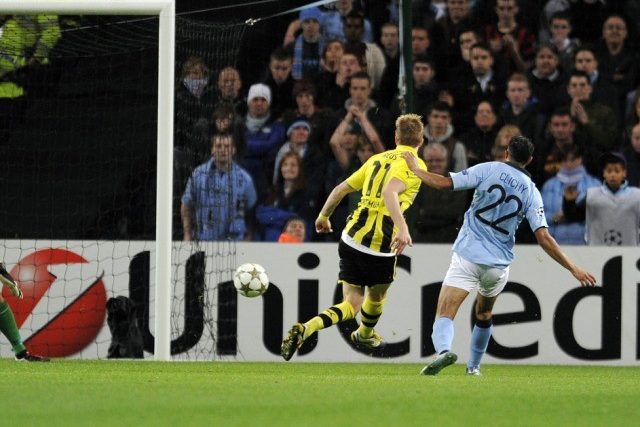 Die Dortmunder standen beim englischen Meister Manchester City kurz vor dem Sieg. Marco Reus hatte in der 61. Minute das 1:0 für den deutschen Titelhalter erzielt. Doch der BVB verpasste es trotz zahlreicher Chancen, den Sack zuzumachen. Der eingewechselte Mario Balotelli rettete in der 90. Minute mit einem verwerteten Handspenalty den Citizens den ersten Punkt.