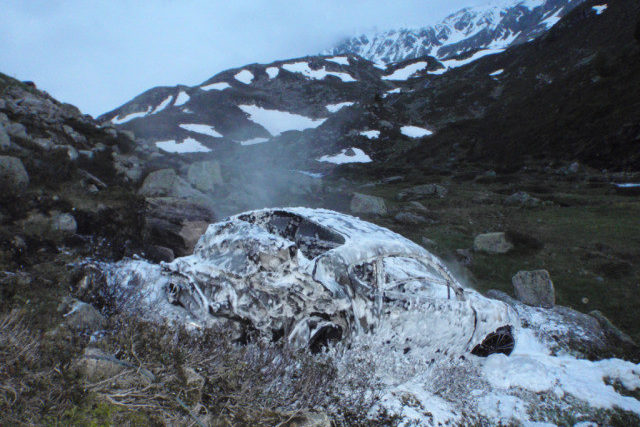 Das Auto fing sofort Feuer, wie die Kantonspolizei Graubünden am Samstag mitteilte. Obwohl sie verletzt waren, konnten sich die drei Insassen aus dem brennenden Wagen retten.