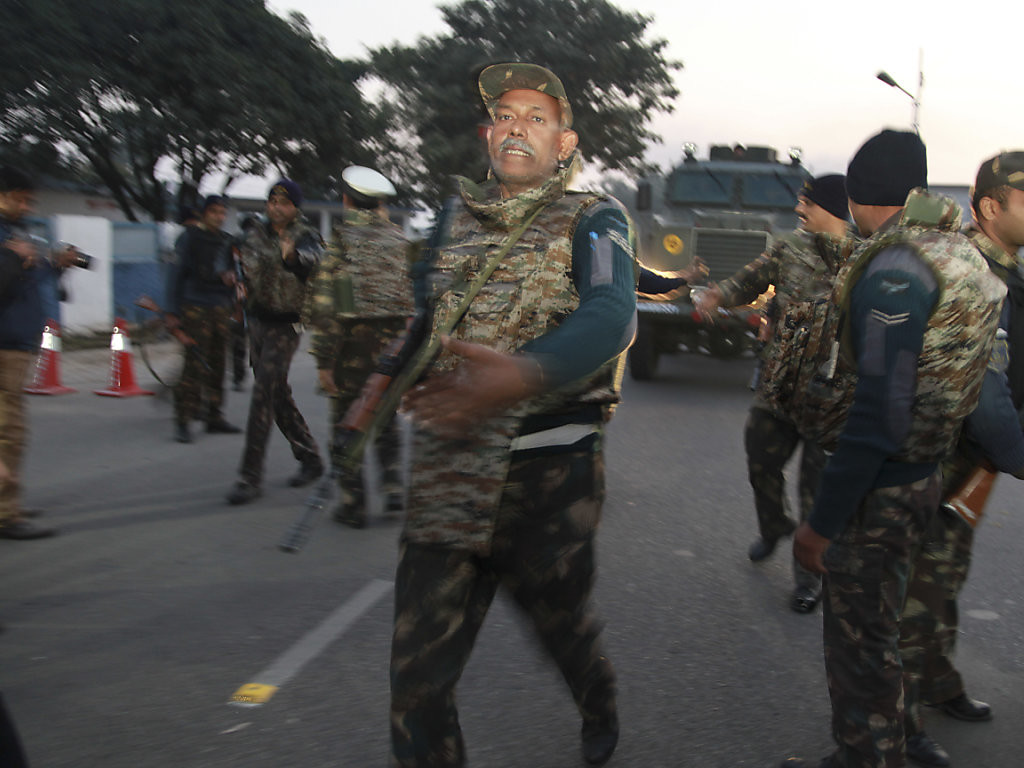 Mindestens ein Eindringling sei noch auf der weiträumigen Basis, berichtete der indische Nachrichtensender Times Now am Montag. Helikopter überflogen das Gelände unweit der Grenze zu Pakistan. Die Angreifer seien wahrscheinlich pakistanische Extremisten. Erst vor wenigen Tagen war Indiens Regierungschef Narendra Modi überraschend beim Erzfeind Pakistan, um neue Friedensgespräche voranzutreiben.