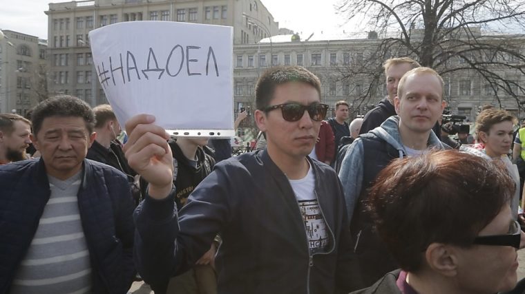 Die Polizei sprach von rund 250 Teilnehmern in Moskau. Die Organisatoren berichteten von rund 1000 Menschen, die bei Sonnenschein und Frühlingstemperaturen zum Präsidialamt zogen. Sie versammelten sich vor der Präsidialverwaltung, um dort Petitionen gegen eine erneute Kandidatur Putins abzugeben. Der Präsident sei schon zu lange an der Macht, sagte der Organisator der Proteste, Jakow Jermakow. «Unser Land entwickelt sich nicht weiter.»