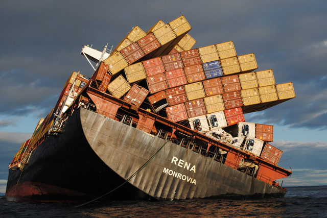 Dutzende Container rutschten ins Meer. Viele brachen auf. Tonnenweise faule Fracht wurde an die Strände geschwemmt.