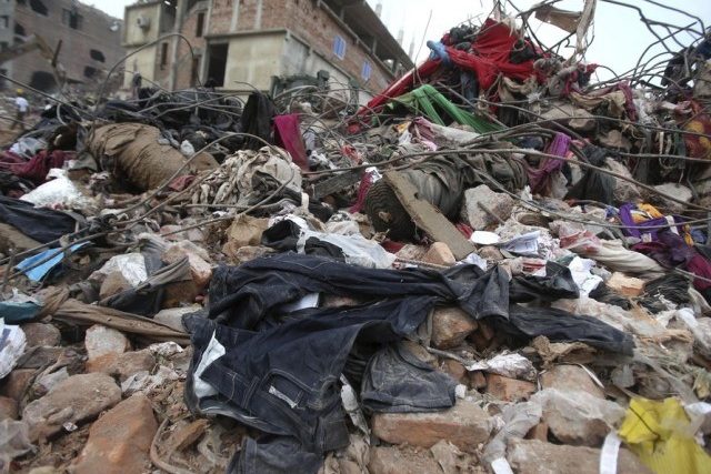 Das Gebäude, in dem fünf Textilfabriken untergebracht waren, war am 24. April eingestürzt. Mehr als 3000 Arbeiter wurden unter den Trümmern verschüttet.