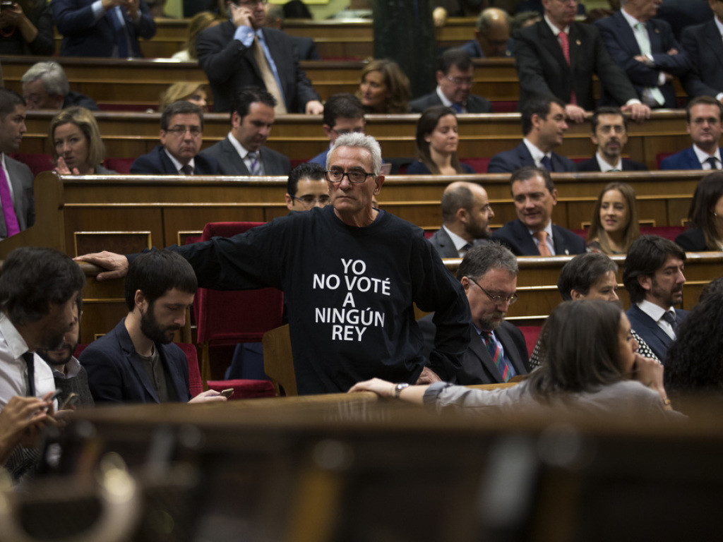 Diesem Protest schlossen sich auch Vertreter von einigen Regionalparteien an. Abgeordnete trugen vor den Augen von Königin Letizia und der Töchter Leonor und Sofía auch T-Shirts mit Aufschriften wie «Ich habe keinen König gewählt».