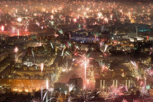 In der russischen Hauptstadt Moskau erstrahlte der Himmel über der Basilius-Kathedrale am Roten Platz in rotem und grünem Feuerwerk. Präsident Wladimir Putin übermittelte seinem US-Kollegen Barack Obama eine Grussbotschaft und erklärte darin, beide Länder trügen eine Verantwortung dafür, den Weltfrieden zu wahren.
