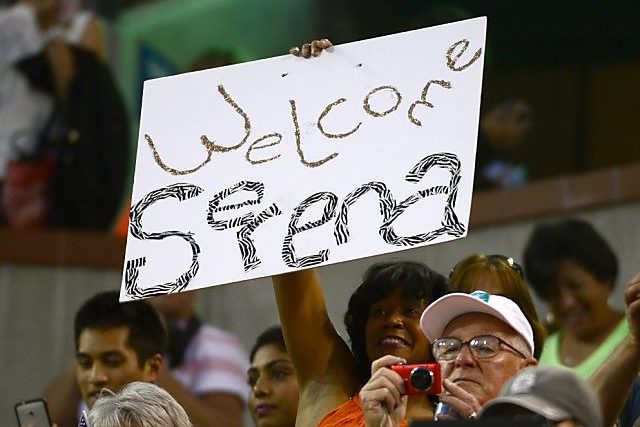 14 Jahre lang hatte Serena Williams das Frauenturnier in Indian Wells boykottiert, nachdem sie 2001 im Final als 19-Jährige ausgepfiffen und gemäss eigenen Ansichten rassistisch beleidigt worden war. Die Rückkehr fiel nun wesentlich freundlicher aus. Bereits am Eingang standen Fangruppen mit Plakaten, auf denen «Welcome back Serena» stand. Beim Einlauf ins allerdings nicht vollbesetzte Stadion wurde die inzwischen 19-fache Grand-Slam-Siegerin mit einer Standing Ovation begrüsst. Überbordend war die Stimmung allerdings nicht, das Rentnerparadies in der kalifornischen Wüste ist definitiv nicht New York. Dennoch kämpfte die Amerikanerin schon vor Spielbeginn mit den Tränen.