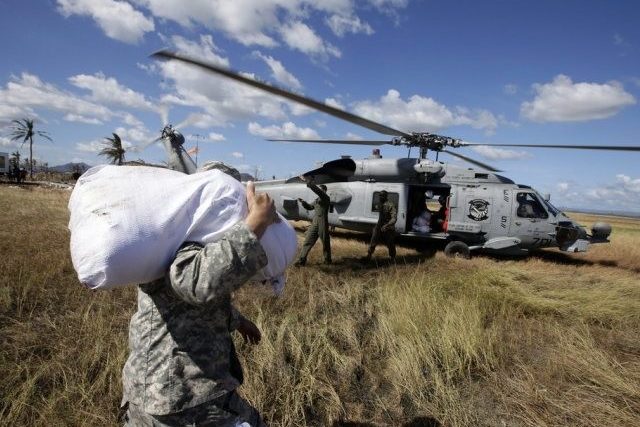 Vom US-Flugzeugträger «USS George Washington» aus starteten pausenlos Helikopter mit Hilfsgütern für die Fischerstadt Guiuan auf der Insel Samar. Nach Angaben der US-Marine sind insgesamt acht US-Schiffe an der Hilfsaktion beteiligt. Die «USS George Washington» hat 5000 Marinesoldaten an Bord.