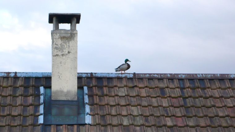 Im Kleinbasel steigen bzw. fliegen die Enten aufs Dach.