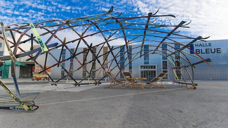 Forschende des Smart Living Lab der EPFL in Freiburg haben einen leicht zerlegbaren Pavillon aus rund 200 alten Ski entwickelt. Eine Alternative zum Recycling.