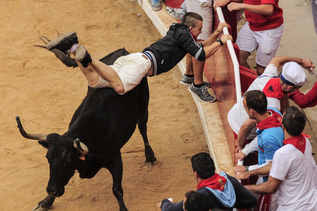 Seit 1911 kamen bei dem Fest 15 Menschen ums Leben, allein im vergangenen Jahr wurden 50 Teilnehmer ins Spital eingeliefert. Zuletzt erlitt ein 27-jähriger Spanier vor vier Jahren tödliche Verletzungen, als ein Stier ihm die Hörner in Nacken, Herz und Lunge rammte.