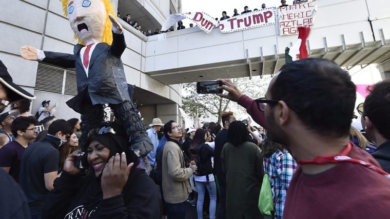 Einige der Demonstranten schwenkten zudem mexikanische Flaggen. Trump, der das Kandidatenfeld bei den Republikanern mit grossem Vorsprung anführt, hat mexikanische Einwanderer als Vergewaltiger und Kriminelle bezeichnet. Eines seiner zentralen Wahlversprechen ist der Bau einer Mauer an der Südgrenze der USA.