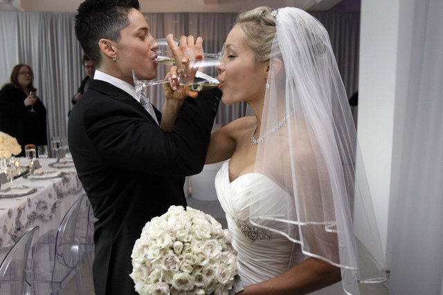 Es war die erste Hochzeit eines gleichgeschlechtlichen Paares im Empire State Building: Zwei Frauen schlossen am Valentinstag in dem New Yorker Wahrzeichen den Bund fürs Leben. Das Paar hatte einen Wettbewerb im Internet gewonnen.