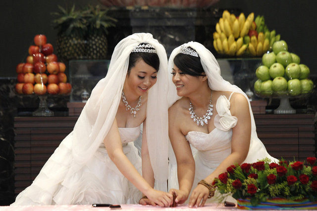 Vor einem Jahr gaben sich bei einer inoffiziellen Hochzeitsfeier in Taiwan rund 80 lesbische Paare das Ja-Wort, um auf ihr Anliegen aufmerksam zu machen.