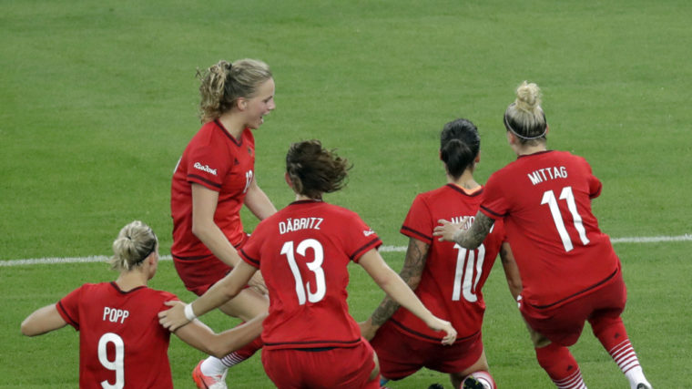 In ihrem ersten Olympia-Final überhaupt gingen die Deutschen durch ein Traumtor von Dzsenifer Marozsan kurz nach der Pause in Führung. Die jüngste Spielerin der Bundesliga-Geschichte, die künftig für Olympique Lyon spielt, zirkelte den Ball von der Strafraumgrenze unhaltbar in den Winkel.