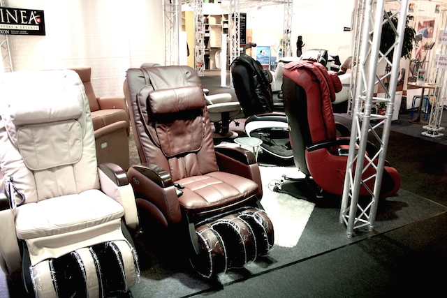 Draussen wird es langsam dunkel und der Schrittzähler, den wir vom Diabetes-Verein geschenkt bekommen haben, hat fleissig die Schritte gezählt. 17’876. Die Füsse sind halb geschwollen und schmerzen, als wir am MBT-Stand vorbeikommen. Der Gesundheitsschuhhersteller produziert seit neustem auch Golfschuhe.