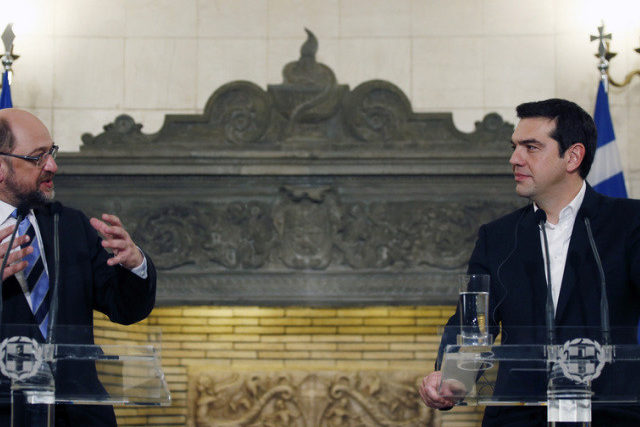 Schulz sagte, Athen sei auch im Zusammenhang mit der Ukraine-Krise bereit, mit den anderen EU-Staaten über die griechischen Positionen zu reden und nichts im Alleingang zu unternehmen. Am Freitag wird der Chef der Eurogruppe, Jeroen Dijsselbloem, zu Gesprächen in Athen erwartet.