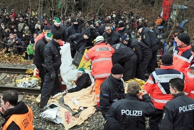 Unterdessen war die Lage auch an vielen anderen Stellen am Rande der Schienenstrecke äusserst unübersichtlich. Immer wieder gab es in den Waldstücken spontane Blockaden. Zudem griffen kleine Gruppen gewaltbereiter Castor-Gegner die Einsatzkräfte mit Steinen und Böllern an. Auch Journalisten wurden nicht verschont.