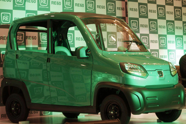 Der indische Fahrzeughersteller Bajaj hat ein neues Billigauto vorgestellt, das gegen den Konkurrenten Tata Nano ins Rennen gehen soll. Der Bajaj RE 60 ist mit einem 200-Kubikzentimeter-Motor ausgerüstet und soll 2,5 Liter Benzin auf 100 Kilometern verbrauchen.