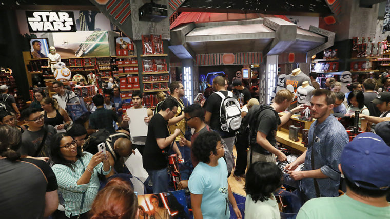 Dutzende «Star Wars»-Fans haben in der Nacht zum Freitag einen Spielzeugladen am New Yorker Times Square belagert. Dort wurde von Mitternacht an Spielzeug verkauft, das über den neuen «Star Wars»-Film vermarktet wird.