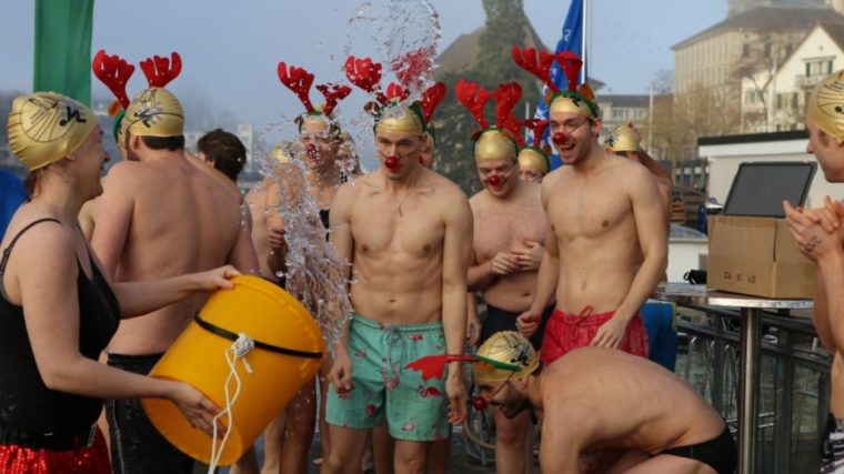 Für das diesjährige Samichlaus-Schwimmen haben am Sonntag nicht gerade winterliche Bedingungen geherrscht. Fast 350 Teilnehmende stürzten sich am Sonntag in die acht Grad kalte Limmat, um die 111 Meter lange Schwimmstrecke zurückzulegen.