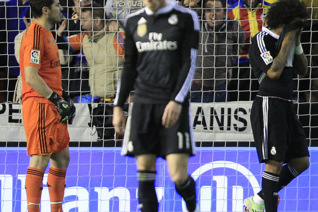 Doch im neuen Jahr stolperte Real bereits über die erste Hürde. Fünf Tage nach einem 2:4 in einem Testspiel in Dubai gegen Milan verlor Real beim viertklassierten Valencia 1:2. Zwar ging der Favorit durch Cristiano Ronaldos Handspenalty schon nach einer Viertelstunde in Führung (26. Meisterschaftstor für den Portugiesen), doch unter Kontrolle brachte Real Madrid das Geschehen nie. So holte Valencia nach der Pause innerhalb von 13 Minuten durch Antonio Barragan und Nicolas Otamendi zum entscheidenden Gegenschlag aus. Der argentinische Innenverteidiger traf in der 65. Minute mit einem Kopfball nach einem Corner zum Sieg. Real kam in der Schlussphase durch Sergio Ramos, Marcelo und Ronaldo zwar noch zu drei herausragenden Chancen, konnte die dritte Niederlage in der Primera Division aber nicht mehr abwenden.