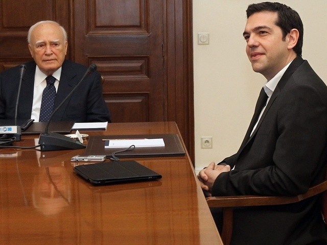 Eine angebliche Einigung auf eine Dreiparteien-Koalition mit der Dimar am Sonntagnachmittag wurde kurze Zeit später dementiert. Der Chef der Syriza-Partei, Alexis Tsipras, hatte zunächst erklärt, drei andere Parteien hätten sich darauf verständigt, für zwei Jahre eine Regierung zu bilden und den von den internationalen Geldgebern verlangten „kriminellen“ Sparkurs fortzusetzen.