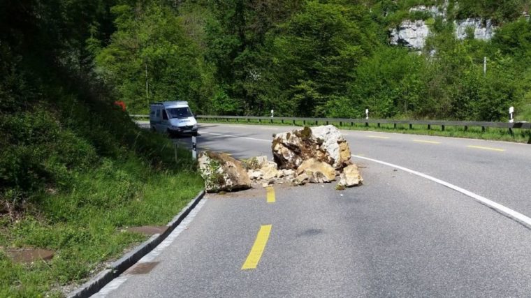 Aus einer Felswand bei Laufen BL sind am Sonntagnachmittag mehrere Tonnen Gestein auf die Strasse nach Delsberg JU gestürzt. Verletzt wurde niemand.