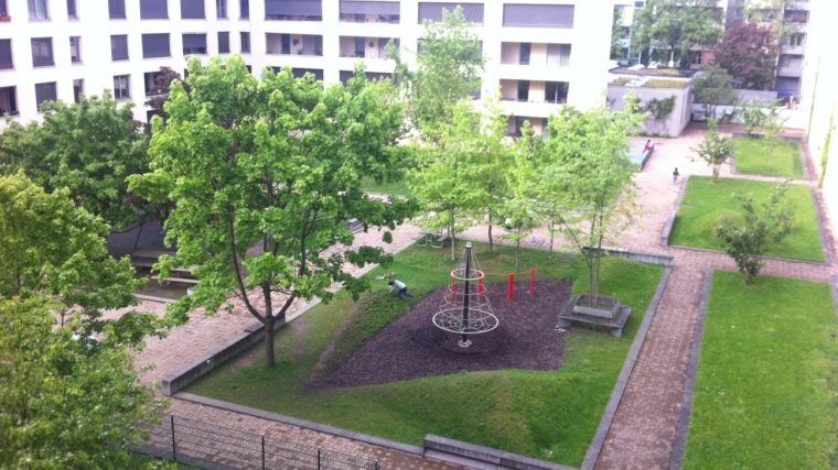 Der Innenhof hatte einst Naturwege aus einer Art Tennisplatz-Sand. Jetzt sind dort Plättchen verlegt. Auch gab es grosse, schön anzusehende Blumenrabatten. Jetzt gibt es einen Spielplatz. Es stehen immer wieder neue Bäume – und dort, wo es früher flach war, wachsen nun pyramidenförmige Grashügel gen Himmel.