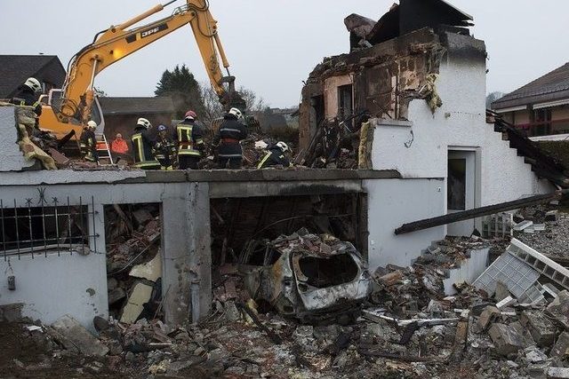 Die Explosion habe sich gegen zwei Uhr morgens ereignet, danach sei Feuer ausgebrochen, teilte die Freiburger Kantonspolizei mit. Das Dach des Hauses stürzte ein. Der Oberamtmann des Greyerzbezirks, Patrice Borcard, sagte im Westschweizer Radio RTS, die Explosion sei wahrscheinlich von der Ölheizung ausgegangen.