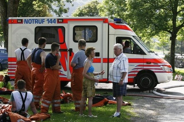 Nachbarn hatten gesehen, wie die 29-jährige Schweizerin brennend vor einen Campingchalet hin und her lief. Sie eilten zur Frau, löschten das Feuer und alarmierten die Rettungskräfte, wie die Polizei mitteilte. Die Frau wohnte alleine auf dem Campingplatz. Sie wurde mit einem Helikopter in eine Spezialklinik geflogen.