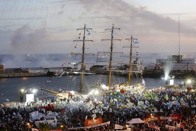 „Willkommen zurück in der Heimat“, rief Präsidentin Cristina Kirchner, die neben weiteren Regierungsmitgliedern an der Feier teilnahm, den Seeleuten zu. Der argentinische Dreimaster war am 2. Oktober im ghanaischen Tema konfisziert worden.