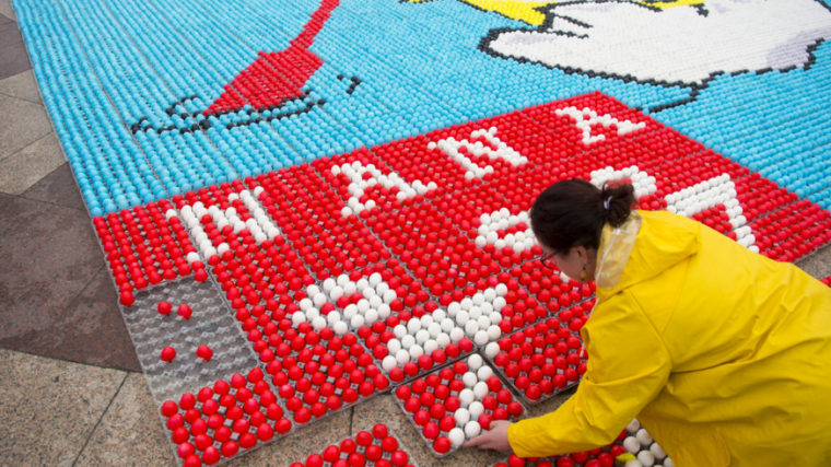 In Lausanne haben Freiwillige an Ostern ein Mosaik aus mehr als 34’000 gefärbten Eiern gelegt. Mit der Tradition sollte Geld gesammelt werden für Familien, deren Kinder an Krebs leiden.