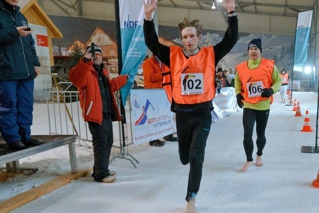 Beim Rennen im Alpincenter Wittenburg in Mecklenburg-Vorpommern kam er als erster von sechs Läufern nach 37 Runden ins Ziel. Ohne Blessuren ging es nicht: Auf dem harten, gefrästen Untergrund unter dem künstlichen Pulverschnee in der Skihalle lief sich Martin die Füsse blutig.
