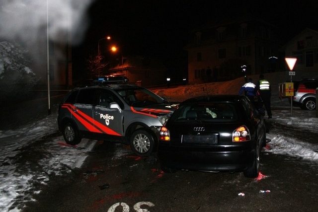 Ein Automobilist, der am Samstag einer Polizeikontrolle in Porrentruy JU entkommen wollte, hat die Kontrolle über sein Fahrzeug verloren und ist frontal in ein entgegenkommendes Polizeiauto geprallt. Zwei Beamte und die drei Passagiere im Fluchtwagen wurden verletzt.