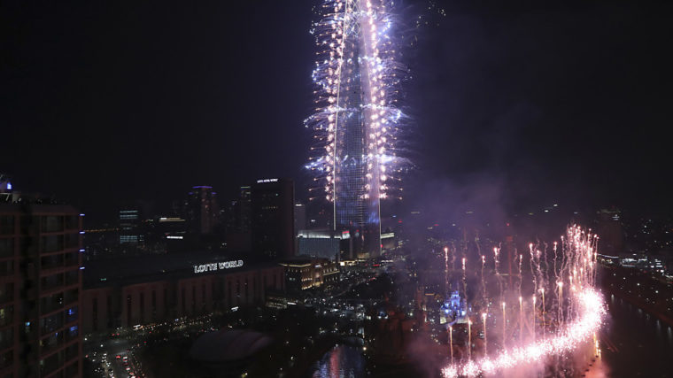 Zur Eröffnung veranstaltete der Lotte-Konzern am Sonntag ein grosses Feuerwerk. Elf Minuten lang hätten 30’000 Feuerwerkskörper den Nachthimmel um den neuen Hochhausturm erhellt, berichtete «The Korea Times».