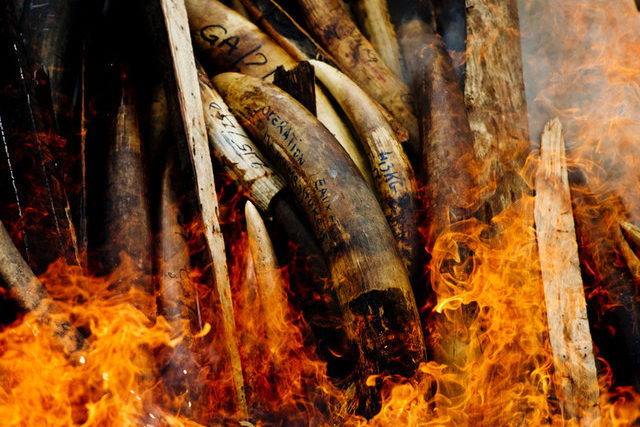 Die Gesamtmenge an verbranntem Elfenbein hatte einen Schätzwert von zehn Millionen Euro. Gabun will mit der Aktion ein Zeichen gegen den illegalen Handel mit Elfenbein setzen.