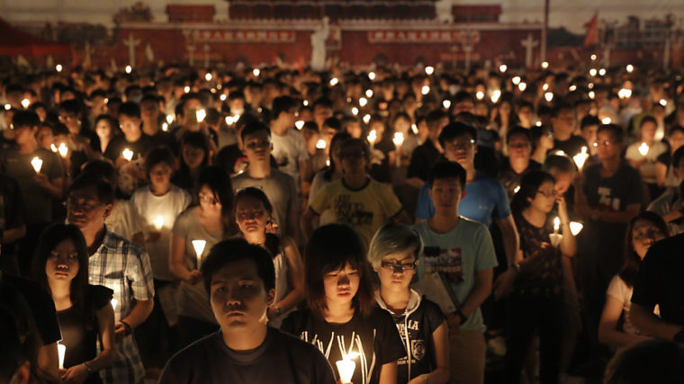 In der autonom regierten chinesischen Sonderverwaltungszone Hongkong versammelten sich Demonstranten am Samstagabend (Ortszeit) zu einer grossen Andacht. Zehntausende Besucher verwandelten den Victoria Park im Herzen der Stadt in ein Meer aus Kerzen.