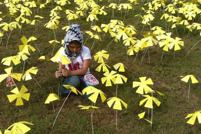 Die achtjährige Aliya Humaira, die in Aceh damals fast ihre ganze Familie verlor, beschrieb ihr eigenes Blumenblatt. „Ich liebe Papa, ich liebe Mama, ich liebe meine Schwester Icha und meinen Bruder Kiki“ stand darauf. „Ich bringe sie jedes Jahr hierher“, sagte ihre Grossmutter Khamariyah, „damit sie die Familie nicht vergisst.“