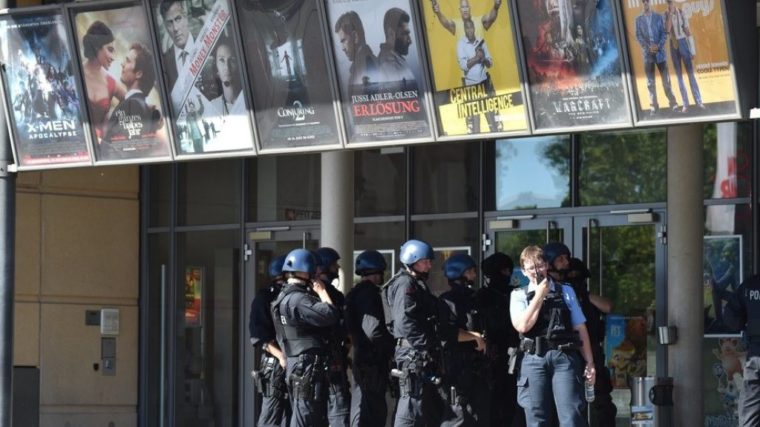 Die Polizei habe den Mann im Kinokomplex lokalisieren können, dann sei es zu «einer Bedrohungssituation» gekommen, sagte eine Polizeisprecherin. Daraufhin seien von der Polizei Schüsse abgegeben worden.
