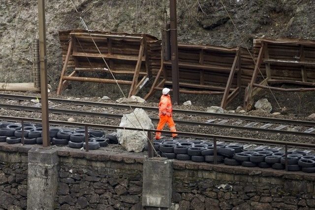 Die Bahnlinie bleibt für den Personenverkehr bis am Montagmittag unterbrochen. Nach der Sprengung hatten Geologen den Hang untersucht und danach grünes Licht für die Räumungs- und Reparaturarbeiten gegeben.