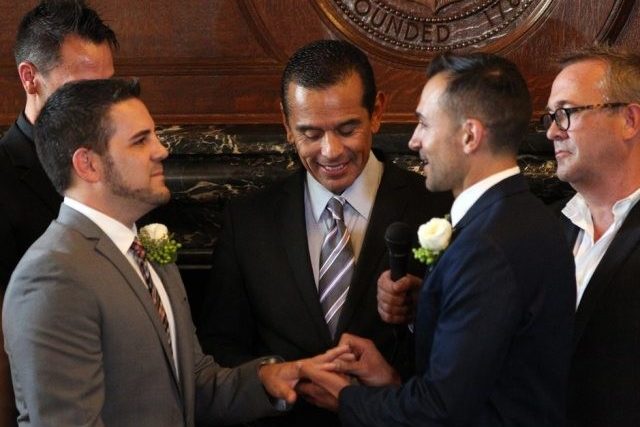 Das lesbische Paar hatte neben Paul Katami und Jeff Zarrillo gegen das Verbot der Homo-Ehe geklagt. Das schwule Paar heiratete ebenfalls noch am Freitag. «Ich weiss nicht, wie es Ihnen geht, aber ich habe Gänsehaut», sagte der Bürgermeister von Los Angeles, Antonio Villaraigosa, der Katami und Zarrillo im Rathaus der Millionenstadt traute.
