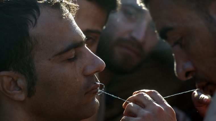 Hunderte Flüchtlinge haben mit spektakulären Protesten auf ihre Abweisung an der griechisch-mazedonischen Grenze bei Gevgelija reagiert. Einige nähten sich den Mund zu, während sich andere Männer mit nackten Oberkörpern in der Kälte präsentierten.