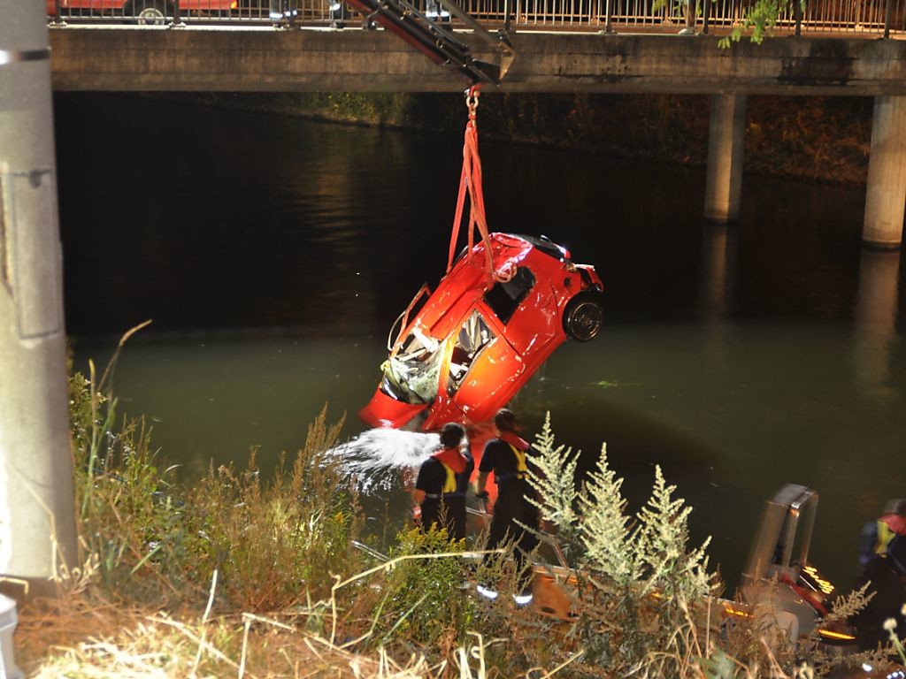 Die drei Frauen kamen mit einem Schock und leichten Verletzungen davon. Für die Bergung des Unfallfahrzeugs wurde die Berufsfeuerwehr mit einem Löschboot zugezogen.