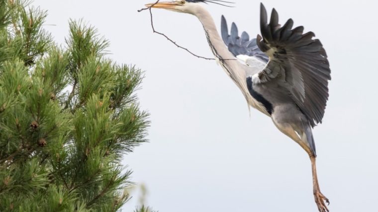 Die wild lebenden Graureiher in der Vogelwarte Sempach sind derzeit daran, ihre Nester aus dem vergangenen Jahr zu renovieren. Sie bereiten sich damit auf die Brutzeit vor.