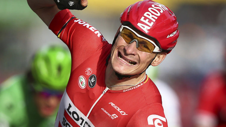 Der Deutsche Andre Greipel gewinnt in Breda in Holland im Spurt des Feldes die 2. Etappe der Benelux-Rundfahrt.