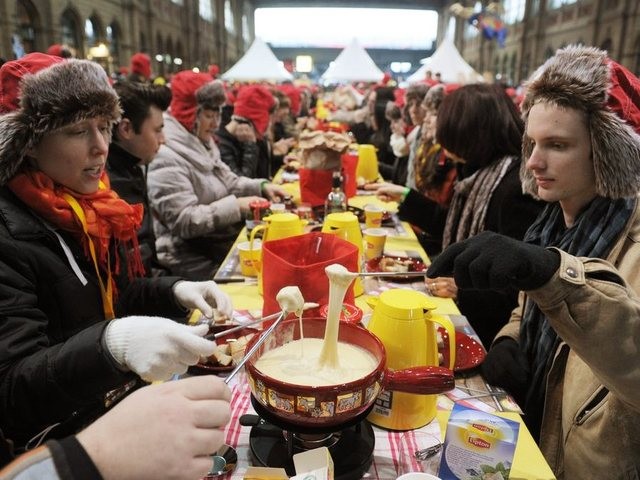 Die Veranstalter sprachen von einem Weltrekord und erhoffen sich einen Eintrag im Guinnessbuch, wie sie am Sonntag mitteilten. Die Teilnahme am Fondueessen kostete 30 Franken. Veranstaltet haben das Happening die Betreiber der Onlineplattform Gonna.do, welche auch Massen-Schlauchbootfahrten organisieren.