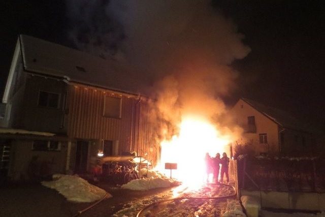 Das Feuer brach in einem ans Haus angebauten Autounterstand aus. Obwohl die Feuerwehr rasch zur Stelle war, konnten die Flammen auf die hölzerne Hausfassade und den ganzen Hausteil übergreifen. Es gelang jedoch, eine Ausbreitung des Feuers auf den anderen Hausteil zu verhindern.