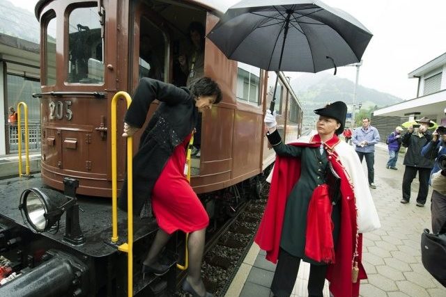 Die Bundesrätin war am Morgen mit einem Sonderzug für geladene Gäste in Frutigen eingetroffen. Nach den offiziellen Reden konnten sich die Besucherinnen und Besucher dem Festprogramm widmen. Im Angebot standen beispielsweise Retourfahrten nach Kandersteg mit historischem und modernem Rollmaterial.