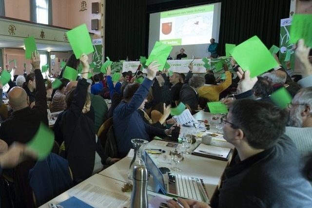 Das von den Jungen Grünen ergriffene Referendum gegen die Asylgesetzrevision unterstützt die Grüne Partei, indem sie etwas mehr als 10’000 Unterschriften beisteuern will. Das gab die Parteileitung bekannt. Die Delegierten hatten in diesem Punkt nichts zu entscheiden.